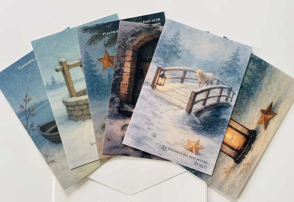 Cartes de Noël – Lot de 6 aquarelles avec verset biblique