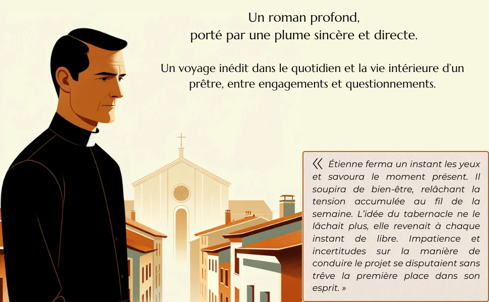 Homme de convictions, pétri d’idéaux, membre d’une Église toujours en quête d’identité, le Père Étienne veut donner le meilleur de lui-même à sa paroisse et conduire toutes les âmes possibles à Jésus. Mais ses idéaux se heurtent à la résistance de ceux qui l’entourent, tant dans la paroisse que dans sa hiérarchie. Le découragement et le poids de la solitude le gagnent parfois… Mais sa foi en Dieu le tire vers l’avant, sa fidélité à l’Église est sa force.