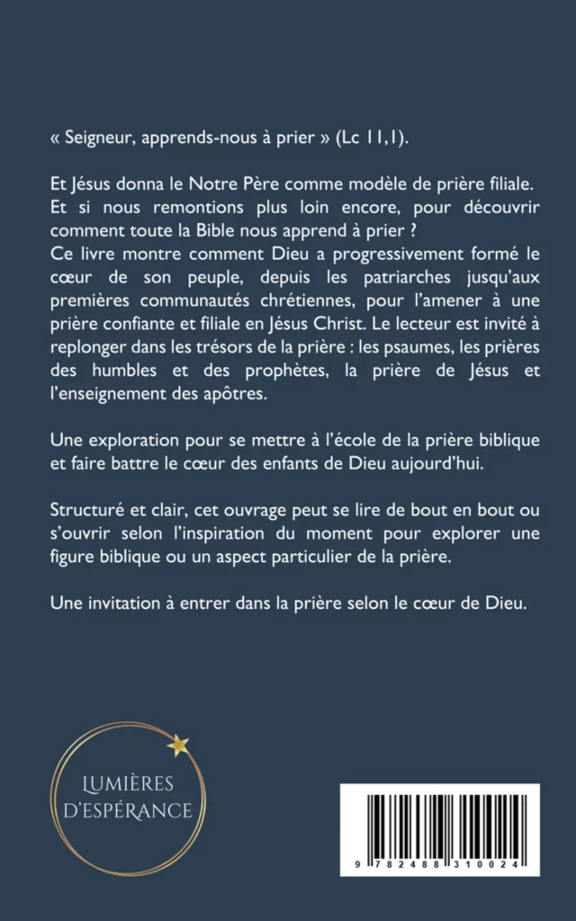 Ce livre propose donc un parcours : il invite à relire toute la Bible en cherchant comment, peu à peu, la prière y prend forme. Des patriarches aux prophètes, des psaumes au Christ, jusqu’aux premières communautés chrétiennes, il s’agit de découvrir comment l’Esprit Saint façonne toujours le cœur des croyants pour les unir au Père, et de se laisser inspirer par ces grands témoins bibliques.